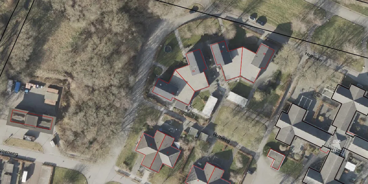 Holtveen 10 is gelegen op kadastraal perceel VRI00T2994. Deze kadastrale aanduiding is uniek en wordt gebruikt door het Kadaster om eigendomsrechten en andere zakelijke rechten vast te leggen. Het perceel maakt onderdeel uit van de kadastrale gemeente Vries.