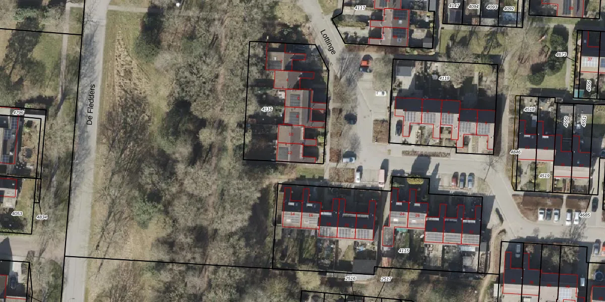 Lottinge 12 is gelegen op kadastraal perceel VRI00P4116. Deze kadastrale aanduiding is uniek en wordt gebruikt door het Kadaster om eigendomsrechten en andere zakelijke rechten vast te leggen. Het perceel maakt onderdeel uit van de kadastrale gemeente Vries.
