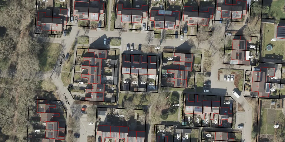 Lottinge 49 is gelegen op kadastraal perceel VRI00P4093. Deze kadastrale aanduiding is uniek en wordt gebruikt door het Kadaster om eigendomsrechten en andere zakelijke rechten vast te leggen. Het perceel maakt onderdeel uit van de kadastrale gemeente Vries.