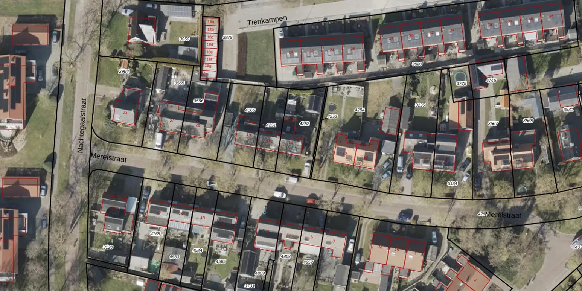 Het perceel waarop Merelstraat 14 staat heeft een oppervlakte van 375 m². Dit is een groot perceel. De perceeloppervlakte wordt geregistreerd door het Kadaster. Gedetailleerde informatie over de maten van dit perceel kunt u vinden in het rapport Kadastrale kaart met maatvoering van Merelstraat 14.