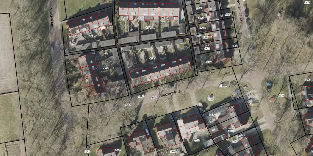 Het perceel waarop Mezenstraat 8 staat heeft een oppervlakte van 1224 m². Dit is een zeer groot perceel. De perceeloppervlakte wordt geregistreerd door het Kadaster. Gedetailleerde informatie over de maten van dit perceel kunt u vinden in het rapport Kadastrale kaart met maatvoering van Mezenstraat 8.