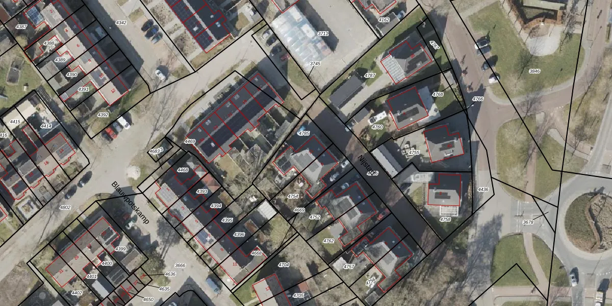 Gebruik de zoekbalk of klik op een perceel voor informatie over de adressen binnen dit perceel.