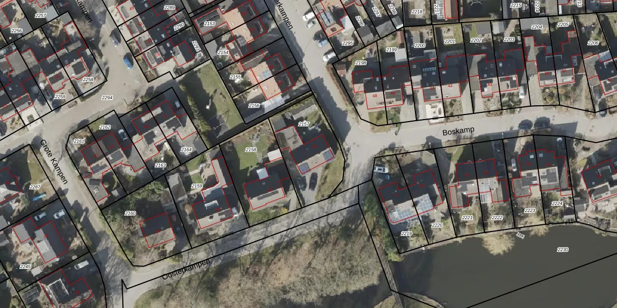 Gebruik de zoekbalk of klik op een perceel voor informatie over de adressen binnen dit perceel.