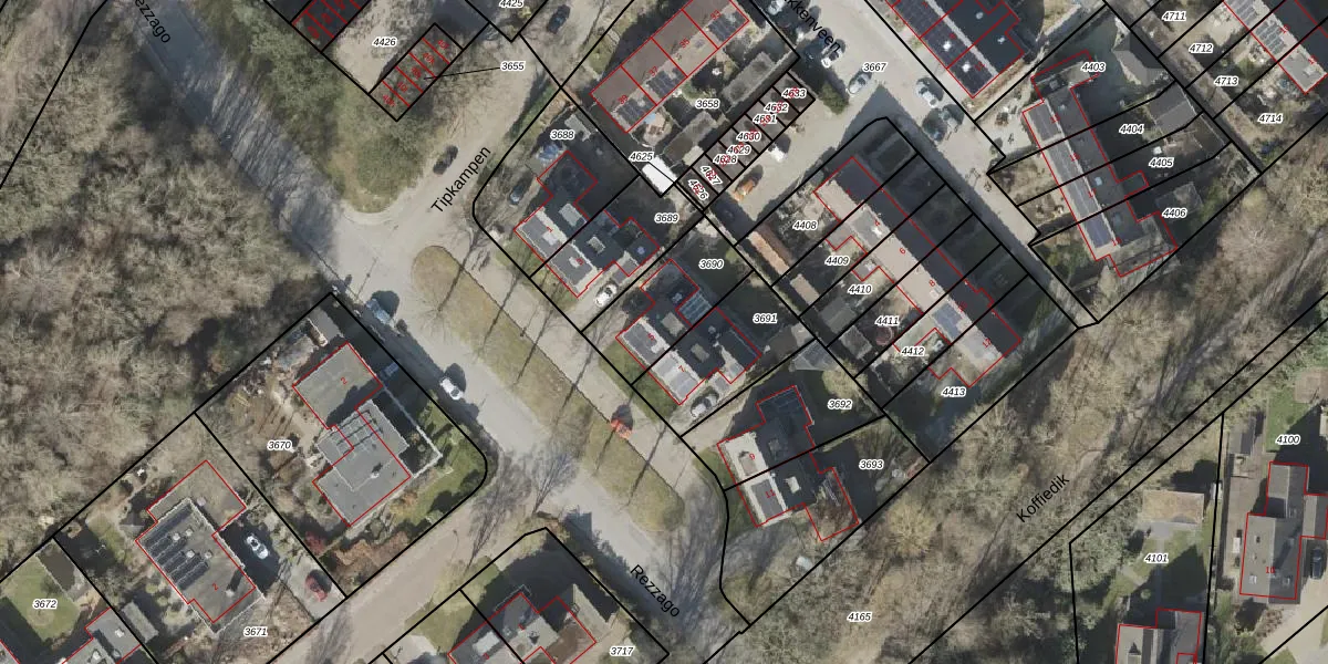 Gebruik de zoekbalk of klik op een perceel voor informatie over de adressen binnen dit perceel.
