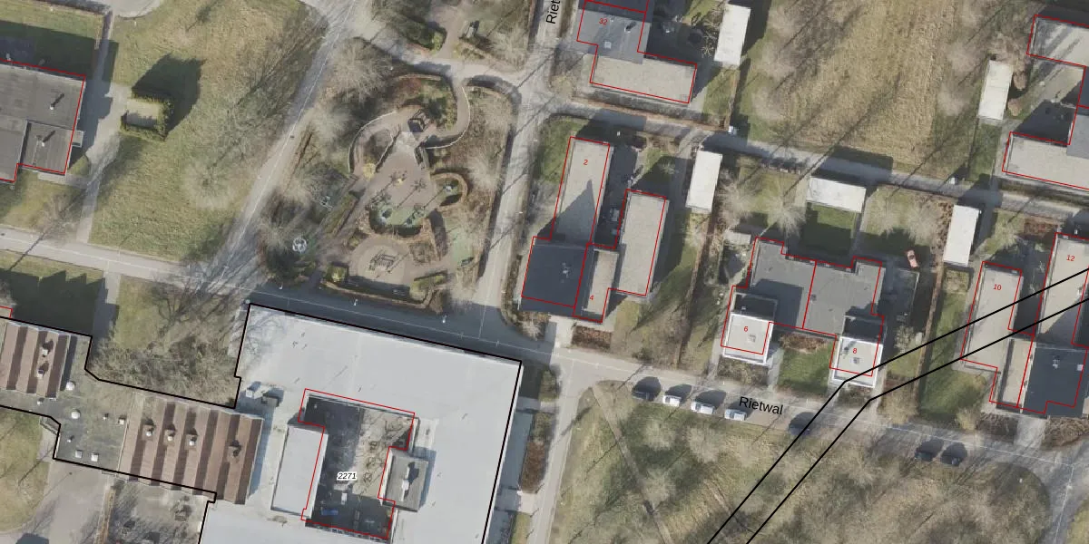 Het perceel waarop Rietwal 2 staat heeft een oppervlakte van 10,4 ha. Dit is een zeer groot perceel. De perceeloppervlakte wordt geregistreerd door het Kadaster. Gedetailleerde informatie over de maten van dit perceel kunt u vinden in het rapport Kadastrale kaart met maatvoering van Rietwal 2.