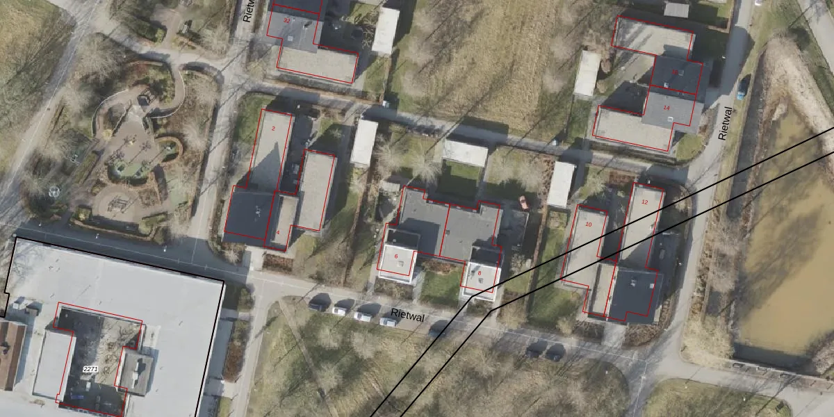 Rietwal 6 is gelegen op kadastraal perceel VRI00T2994. Deze kadastrale aanduiding is uniek en wordt gebruikt door het Kadaster om eigendomsrechten en andere zakelijke rechten vast te leggen. Het perceel maakt onderdeel uit van de kadastrale gemeente Vries.