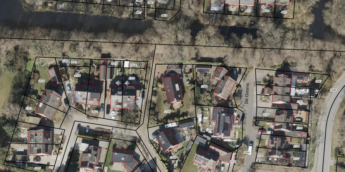 Gebruik de zoekbalk of klik op een perceel voor informatie over de adressen binnen dit perceel.