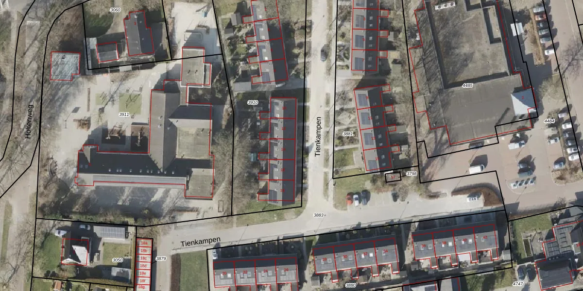 Tienkampen 14 is gelegen op kadastraal perceel VRI00P3910. Deze kadastrale aanduiding is uniek en wordt gebruikt door het Kadaster om eigendomsrechten en andere zakelijke rechten vast te leggen. Het perceel maakt onderdeel uit van de kadastrale gemeente Vries.
