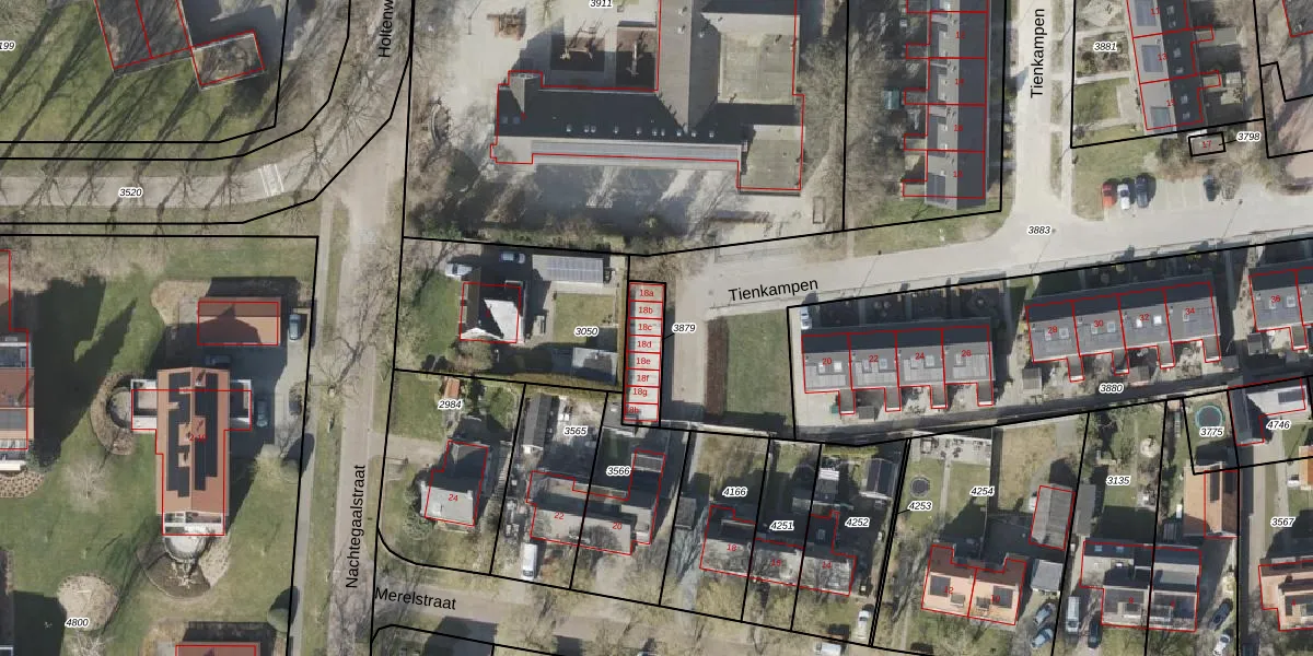 Tienkampen 18-c is gelegen op kadastraal perceel VRI00P3879. Deze kadastrale aanduiding is uniek en wordt gebruikt door het Kadaster om eigendomsrechten en andere zakelijke rechten vast te leggen. Het perceel maakt onderdeel uit van de kadastrale gemeente Vries.