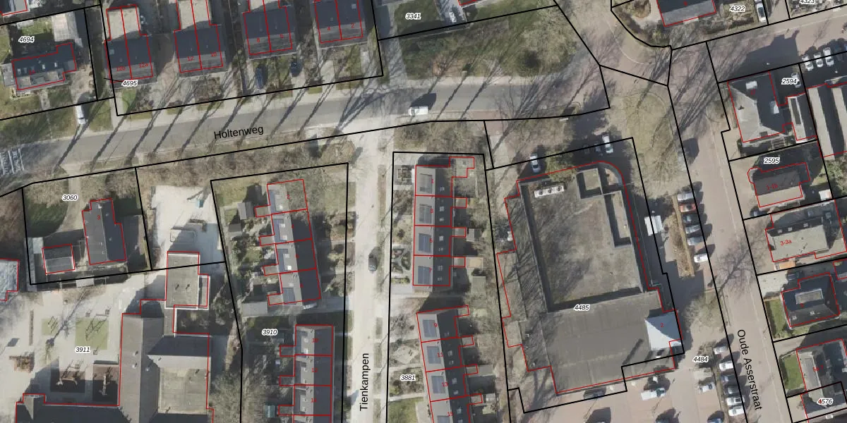 Tienkampen 3 is gelegen op kadastraal perceel VRI00P3881. Deze kadastrale aanduiding is uniek en wordt gebruikt door het Kadaster om eigendomsrechten en andere zakelijke rechten vast te leggen. Het perceel maakt onderdeel uit van de kadastrale gemeente Vries.