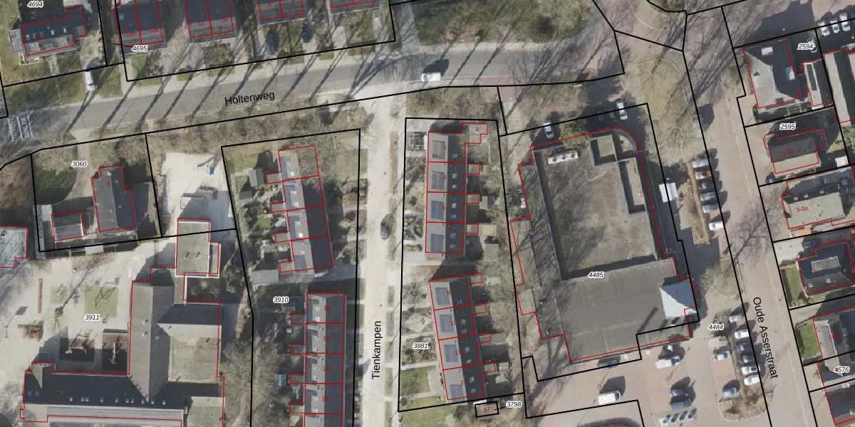 Tienkampen 5 is gelegen op kadastraal perceel VRI00P3881. Deze kadastrale aanduiding is uniek en wordt gebruikt door het Kadaster om eigendomsrechten en andere zakelijke rechten vast te leggen. Het perceel maakt onderdeel uit van de kadastrale gemeente Vries.