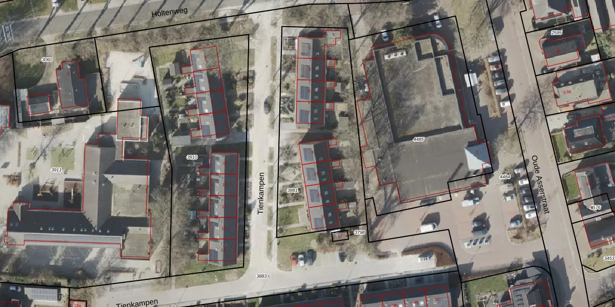 Tienkampen 9 is gelegen op kadastraal perceel VRI00P3881. Deze kadastrale aanduiding is uniek en wordt gebruikt door het Kadaster om eigendomsrechten en andere zakelijke rechten vast te leggen. Het perceel maakt onderdeel uit van de kadastrale gemeente Vries.
