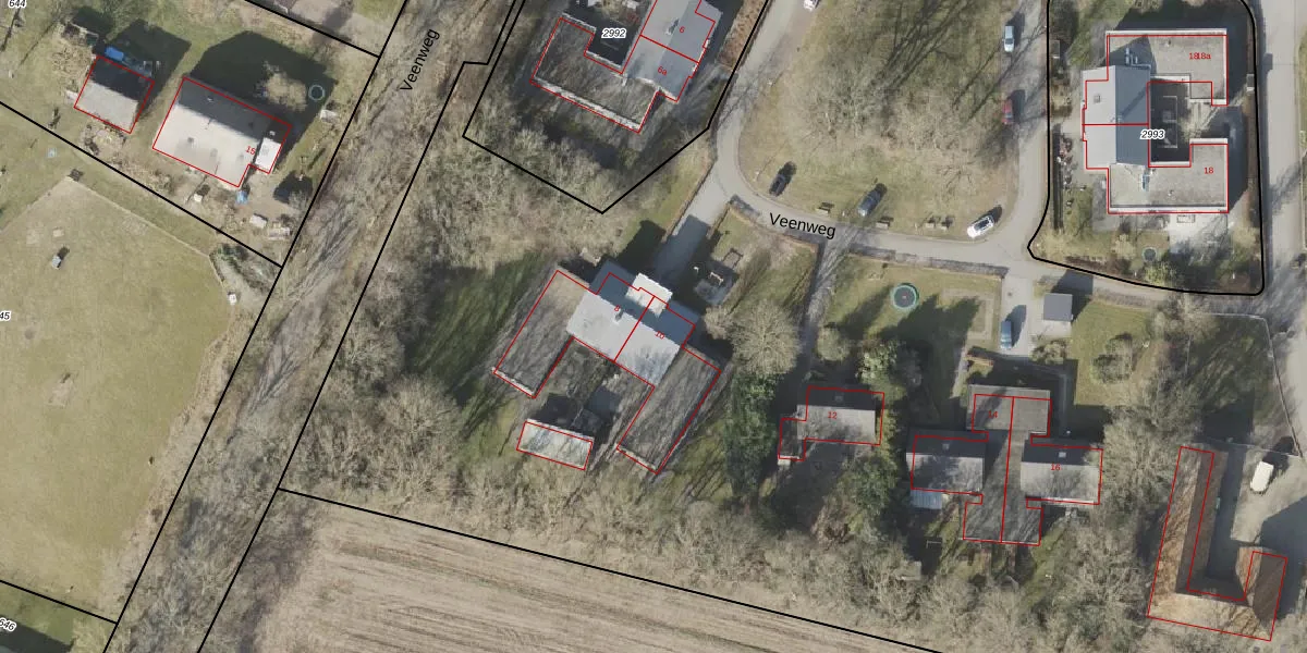 Veenweg 10 is gelegen op kadastraal perceel VRI00T2994. Deze kadastrale aanduiding is uniek en wordt gebruikt door het Kadaster om eigendomsrechten en andere zakelijke rechten vast te leggen. Het perceel maakt onderdeel uit van de kadastrale gemeente Vries.