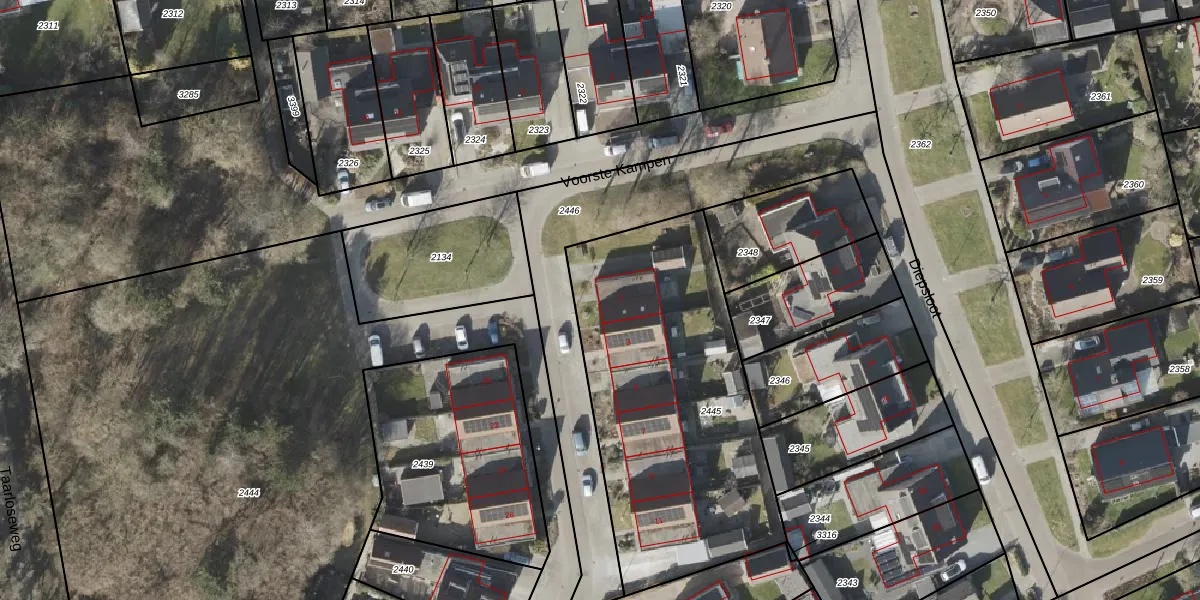 Het perceel waarop Voorste Kampen 1 staat heeft een oppervlakte van 1510 m². Dit is een zeer groot perceel. De perceeloppervlakte wordt geregistreerd door het Kadaster. Gedetailleerde informatie over de maten van dit perceel kunt u vinden in het rapport Kadastrale kaart met maatvoering van Voorste Kampen 1.