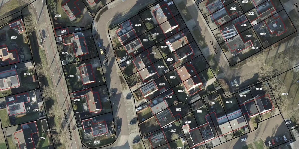 Het perceel waarop De Wulp 71 staat heeft een oppervlakte van 299 m². Dit is een middelgroot perceel. De perceeloppervlakte wordt geregistreerd door het Kadaster. Gedetailleerde informatie over de maten van dit perceel kunt u vinden in het rapport Kadastrale kaart met maatvoering van De Wulp 71.