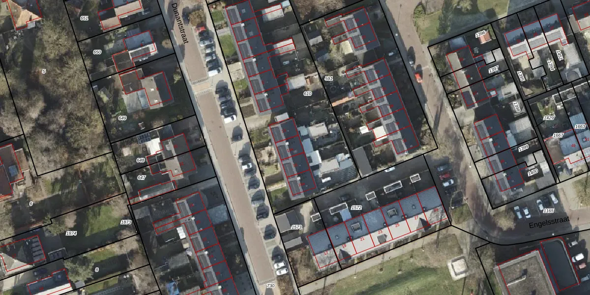 Het perceel waarop Dunantstraat 13-a staat heeft een oppervlakte van 2175 m². Dit is een zeer groot perceel. De perceeloppervlakte wordt geregistreerd door het Kadaster. Gedetailleerde informatie over de maten van dit perceel kunt u vinden in het rapport Kadastrale kaart met maatvoering van Dunantstraat 13-a.