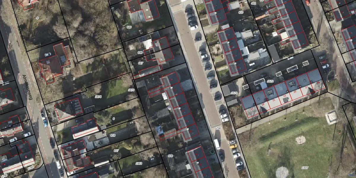 Het perceel waarop het adres ligt is VZV00-K-608. De afkorting 'VZV00' staat voor kadastrale gemeente Vriezenveen. De gemiddelde perceelgrootte in Vriezenveen is 5659,73 m². Dit perceel is kleiner: de perceeloppervlakte bedraagt 2290 m². Het grootste perceel in de kadastrale gemeente is 2,84 km². Het kleinste perceel heeft een oppervlakte van 0 m². Er zijn 10 adressen aanwezig op het perceel. In de Basisregistratie Kadaster (BRK) werden de grenzen van het perceel geregistreerd op 21-06-2022.