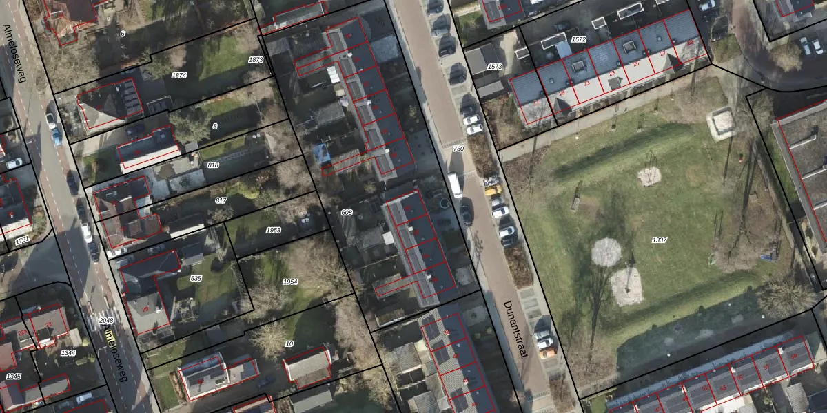 Het perceel waarop Dunantstraat 30 staat heeft een oppervlakte van 2290 m². Dit is een zeer groot perceel. De perceeloppervlakte wordt geregistreerd door het Kadaster. Gedetailleerde informatie over de maten van dit perceel kunt u vinden in het rapport Kadastrale kaart met maatvoering van Dunantstraat 30.