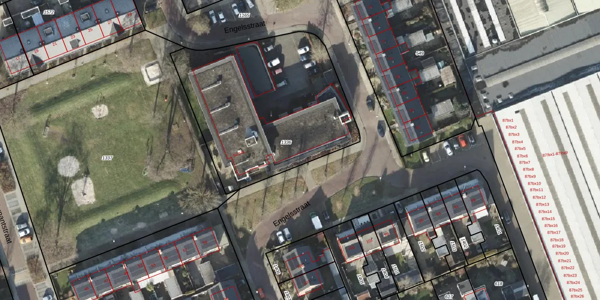 Engelsstraat 34-ap8 is gelegen op kadastraal perceel VZV00K1336. Deze kadastrale aanduiding is uniek en wordt gebruikt door het Kadaster om eigendomsrechten en andere zakelijke rechten vast te leggen. Het perceel maakt onderdeel uit van de kadastrale gemeente Vriezenveen.
