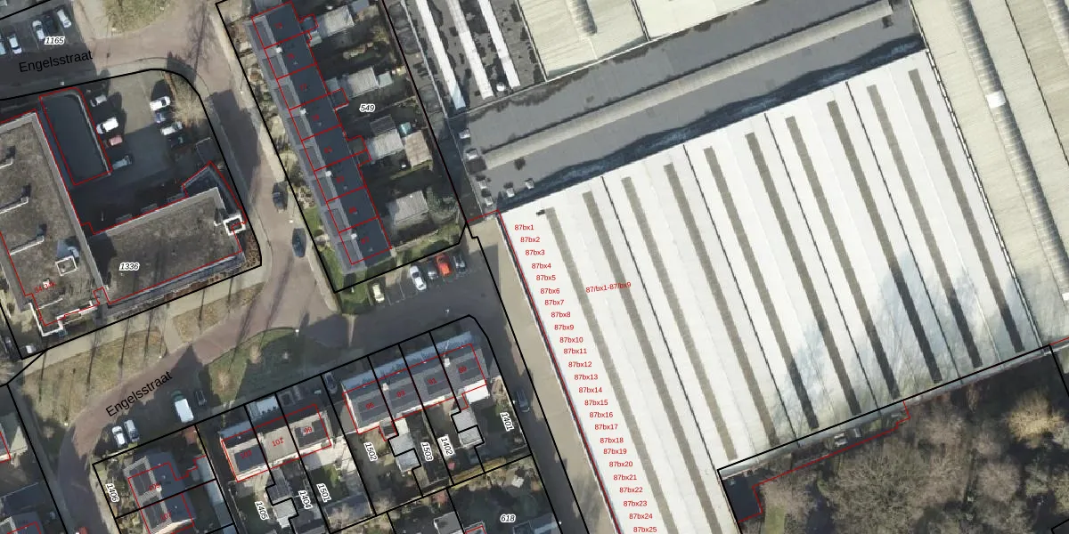 Het perceel waarop Engelsstraat 87-bx5 staat heeft een oppervlakte van 5,3 ha. Dit is een zeer groot perceel. De perceeloppervlakte wordt geregistreerd door het Kadaster. Gedetailleerde informatie over de maten van dit perceel kunt u vinden in het rapport Kadastrale kaart met maatvoering van Engelsstraat 87-bx5.