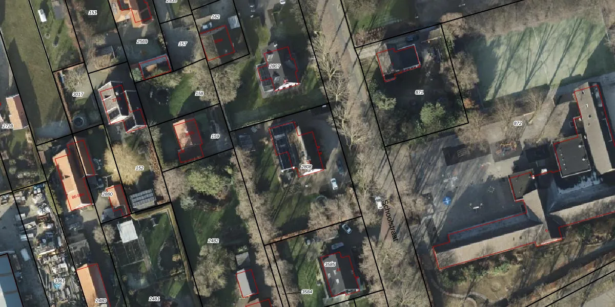 Het perceel waarop Schoolstraat 12 staat heeft een oppervlakte van 1290 m². Dit is een zeer groot perceel. De perceeloppervlakte wordt geregistreerd door het Kadaster. Gedetailleerde informatie over de maten van dit perceel kunt u vinden in het rapport Kadastrale kaart met maatvoering van Schoolstraat 12.