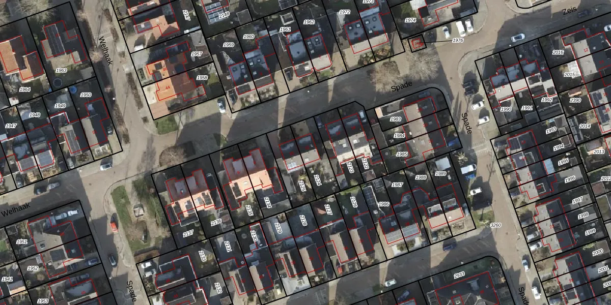Het perceel waarop Spade 12 staat heeft een oppervlakte van 215 m². Dit is een middelgroot perceel. De perceeloppervlakte wordt geregistreerd door het Kadaster. Gedetailleerde informatie over de maten van dit perceel kunt u vinden in het rapport Kadastrale kaart met maatvoering van Spade 12.