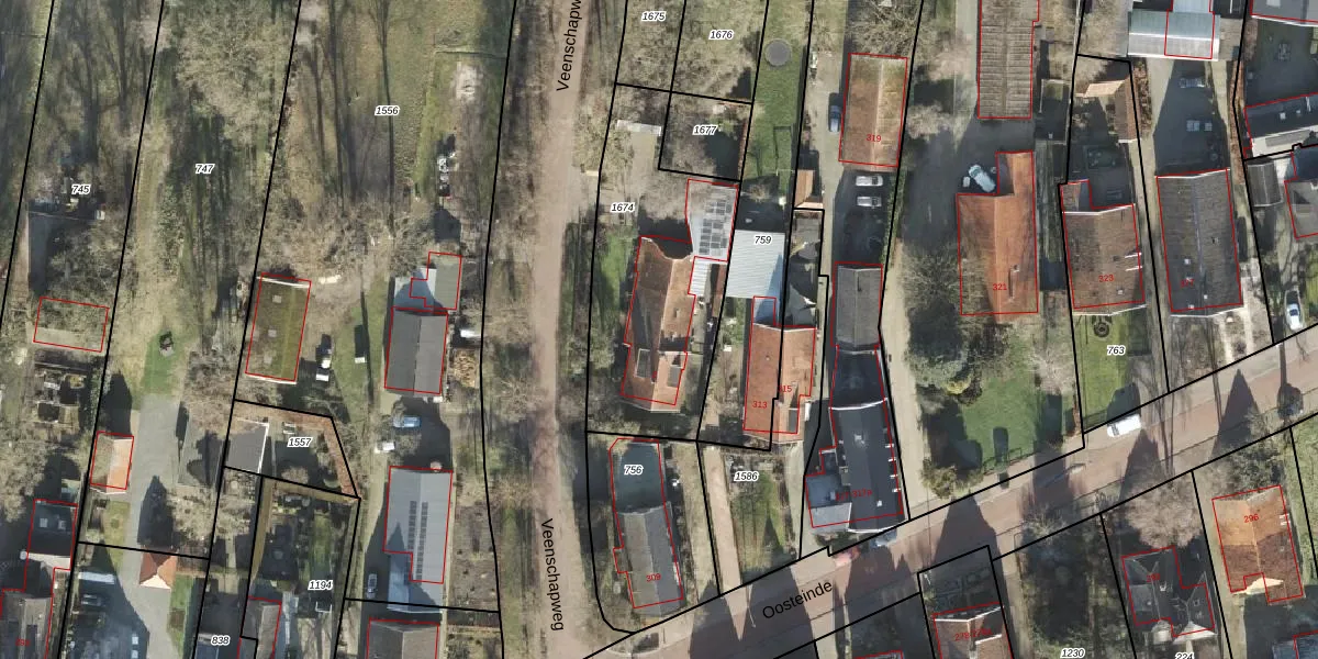 Het perceel waarop Veenschapweg 2 staat heeft een oppervlakte van 900 m². Dit is een groot perceel. De perceeloppervlakte wordt geregistreerd door het Kadaster. Gedetailleerde informatie over de maten van dit perceel kunt u vinden in het rapport Kadastrale kaart met maatvoering van Veenschapweg 2.