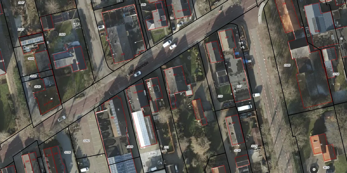 Het perceel waarop Westeinde 261 staat heeft een oppervlakte van 2410 m². Dit is een zeer groot perceel. De perceeloppervlakte wordt geregistreerd door het Kadaster. Gedetailleerde informatie over de maten van dit perceel kunt u vinden in het rapport Kadastrale kaart met maatvoering van Westeinde 261.