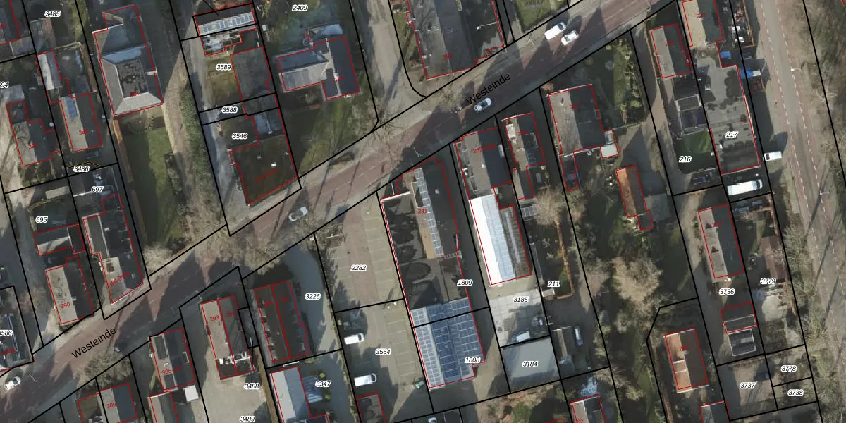 Westeinde 281 is gelegen op kadastraal perceel VZV00L1809. Deze kadastrale aanduiding is uniek en wordt gebruikt door het Kadaster om eigendomsrechten en andere zakelijke rechten vast te leggen. Het perceel maakt onderdeel uit van de kadastrale gemeente Vriezenveen.