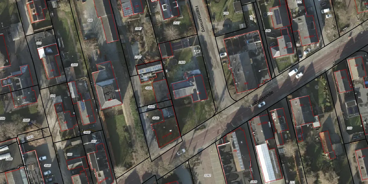 Het perceel waarop Westeinde 370 staat heeft een oppervlakte van 1065 m². Dit is een zeer groot perceel. De perceeloppervlakte wordt geregistreerd door het Kadaster. Gedetailleerde informatie over de maten van dit perceel kunt u vinden in het rapport Kadastrale kaart met maatvoering van Westeinde 370.