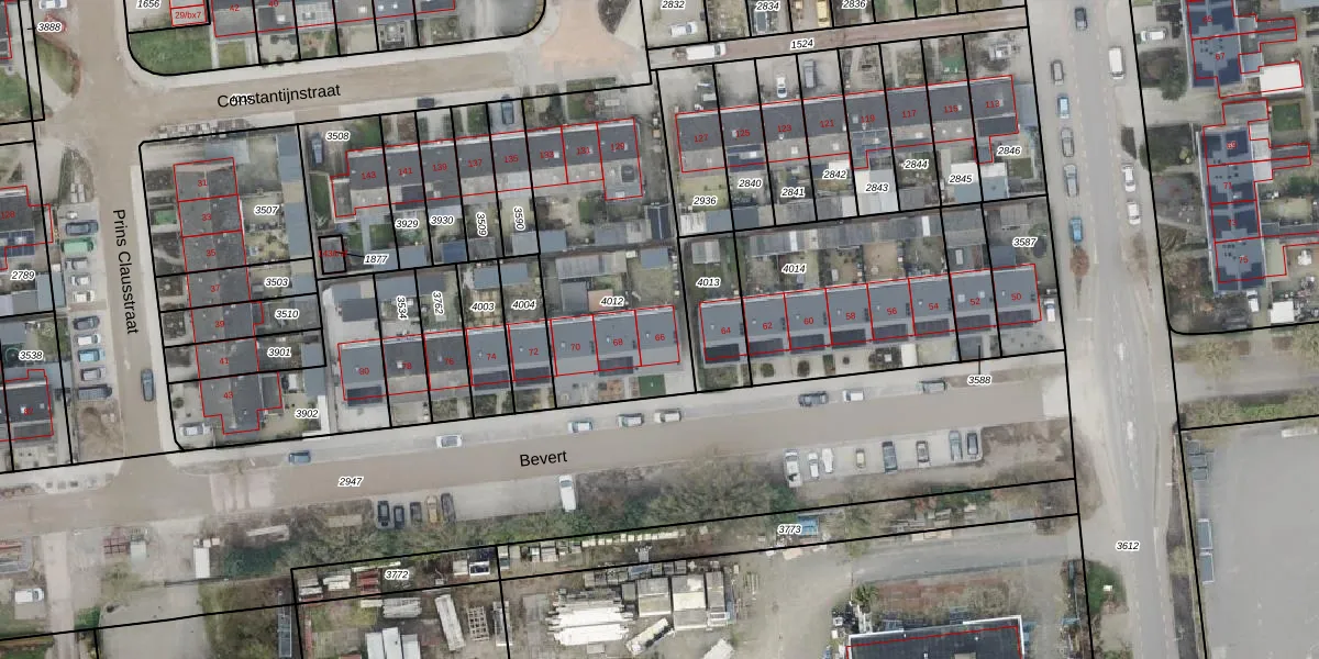 Het perceel waarop Bevert 66 staat heeft een oppervlakte van 1003 m². Dit is een zeer groot perceel. De perceeloppervlakte wordt geregistreerd door het Kadaster. Gedetailleerde informatie over de maten van dit perceel kunt u vinden in het rapport Kadastrale kaart met maatvoering van Bevert 66.