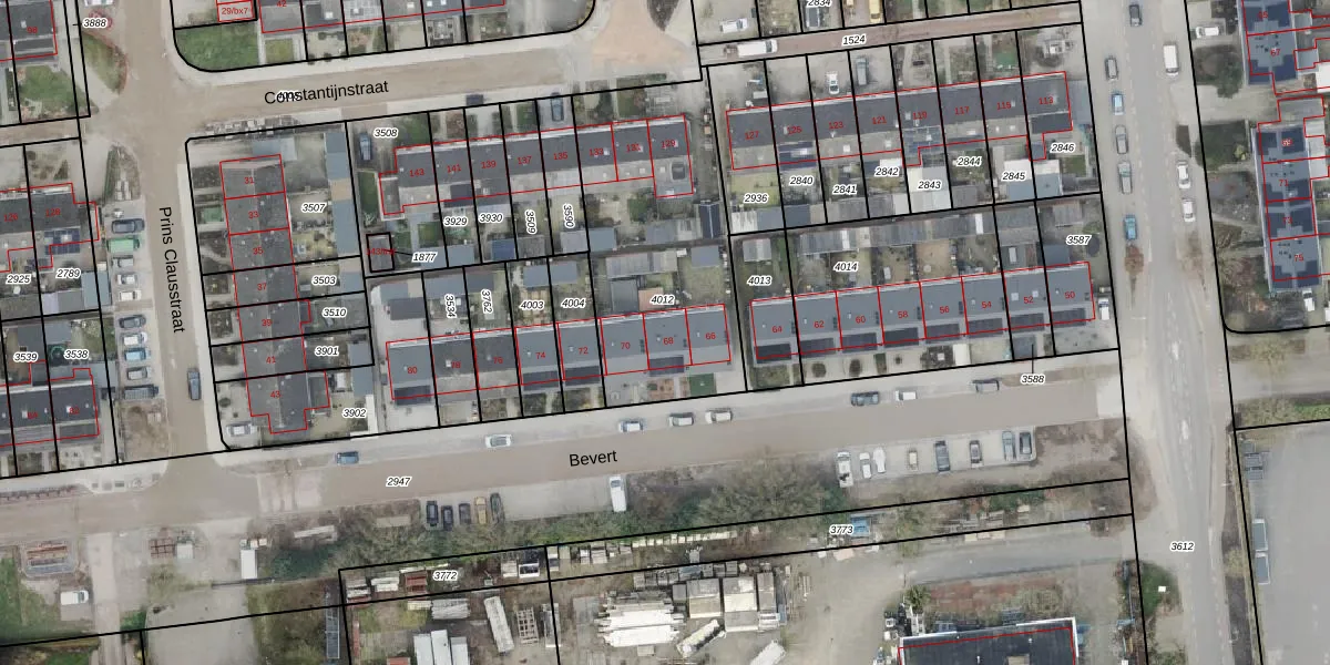 Het perceel waarop Bevert 68 staat heeft een oppervlakte van 1003 m². Dit is een zeer groot perceel. De perceeloppervlakte wordt geregistreerd door het Kadaster. Gedetailleerde informatie over de maten van dit perceel kunt u vinden in het rapport Kadastrale kaart met maatvoering van Bevert 68.