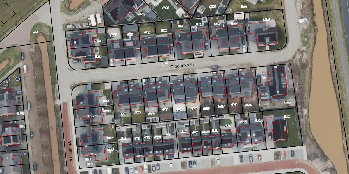 Gebruik de zoekbalk of klik op een perceel voor informatie over de adressen binnen dit perceel.