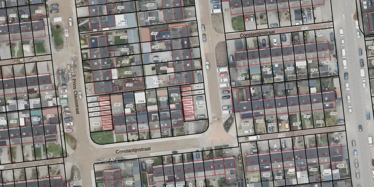 Constantijnstraat 30-bx2 is gelegen op kadastraal perceel HAM00G1664. Deze kadastrale aanduiding is uniek en wordt gebruikt door het Kadaster om eigendomsrechten en andere zakelijke rechten vast te leggen. Het perceel maakt onderdeel uit van de kadastrale gemeente Den Ham.