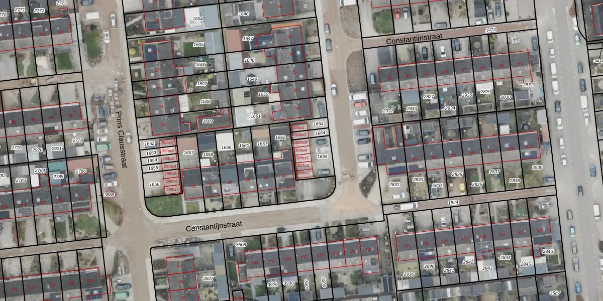Constantijnstraat 30-bx4 is gelegen op kadastraal perceel HAM00G1665. Deze kadastrale aanduiding is uniek en wordt gebruikt door het Kadaster om eigendomsrechten en andere zakelijke rechten vast te leggen. Het perceel maakt onderdeel uit van de kadastrale gemeente Den Ham.