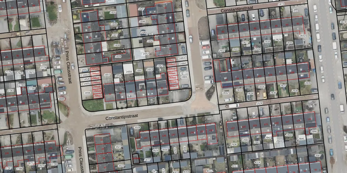 Constantijnstraat 30-bx7 is gelegen op kadastraal perceel HAM00G1665. Deze kadastrale aanduiding is uniek en wordt gebruikt door het Kadaster om eigendomsrechten en andere zakelijke rechten vast te leggen. Het perceel maakt onderdeel uit van de kadastrale gemeente Den Ham.