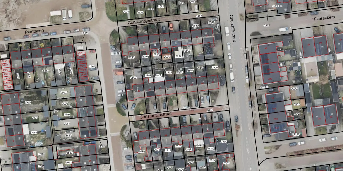 Het perceel waarop Constantijnstraat 39 staat heeft een oppervlakte van 176 m². Dit is een middelgroot perceel. De perceeloppervlakte wordt geregistreerd door het Kadaster. Gedetailleerde informatie over de maten van dit perceel kunt u vinden in het rapport Kadastrale kaart met maatvoering van Constantijnstraat 39.