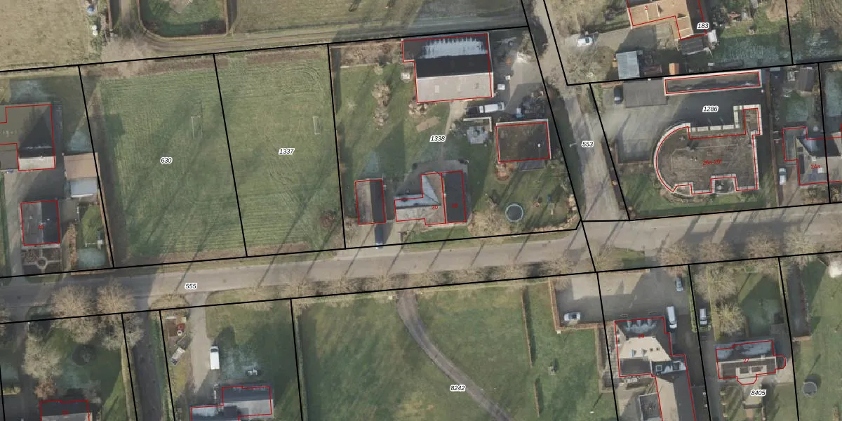 Het perceel waarop De Bunte 30 staat heeft een oppervlakte van 2570 m². Dit is een zeer groot perceel. De perceeloppervlakte wordt geregistreerd door het Kadaster. Gedetailleerde informatie over de maten van dit perceel kunt u vinden in het rapport Kadastrale kaart met maatvoering van De Bunte 30.