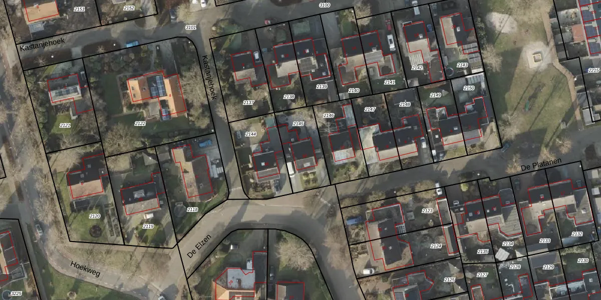 Het perceel waarop De Elzen 34 staat heeft een oppervlakte van 357 m². Dit is een groot perceel. De perceeloppervlakte wordt geregistreerd door het Kadaster. Gedetailleerde informatie over de maten van dit perceel kunt u vinden in het rapport Kadastrale kaart met maatvoering van De Elzen 34.