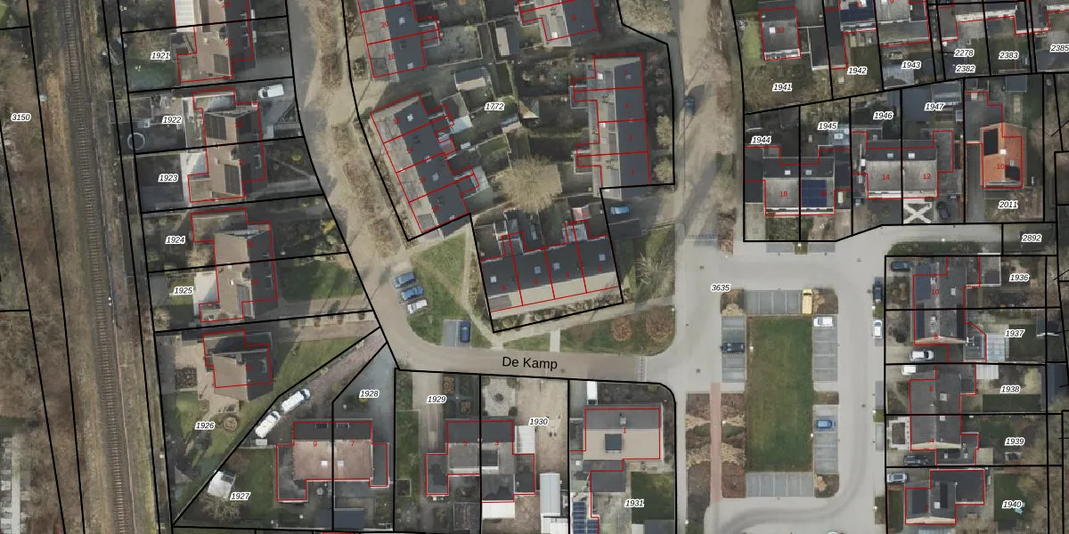 Het perceel waarop De Kamp 6 staat heeft een oppervlakte van 3585 m². Dit is een zeer groot perceel. De perceeloppervlakte wordt geregistreerd door het Kadaster. Gedetailleerde informatie over de maten van dit perceel kunt u vinden in het rapport Kadastrale kaart met maatvoering van De Kamp 6.