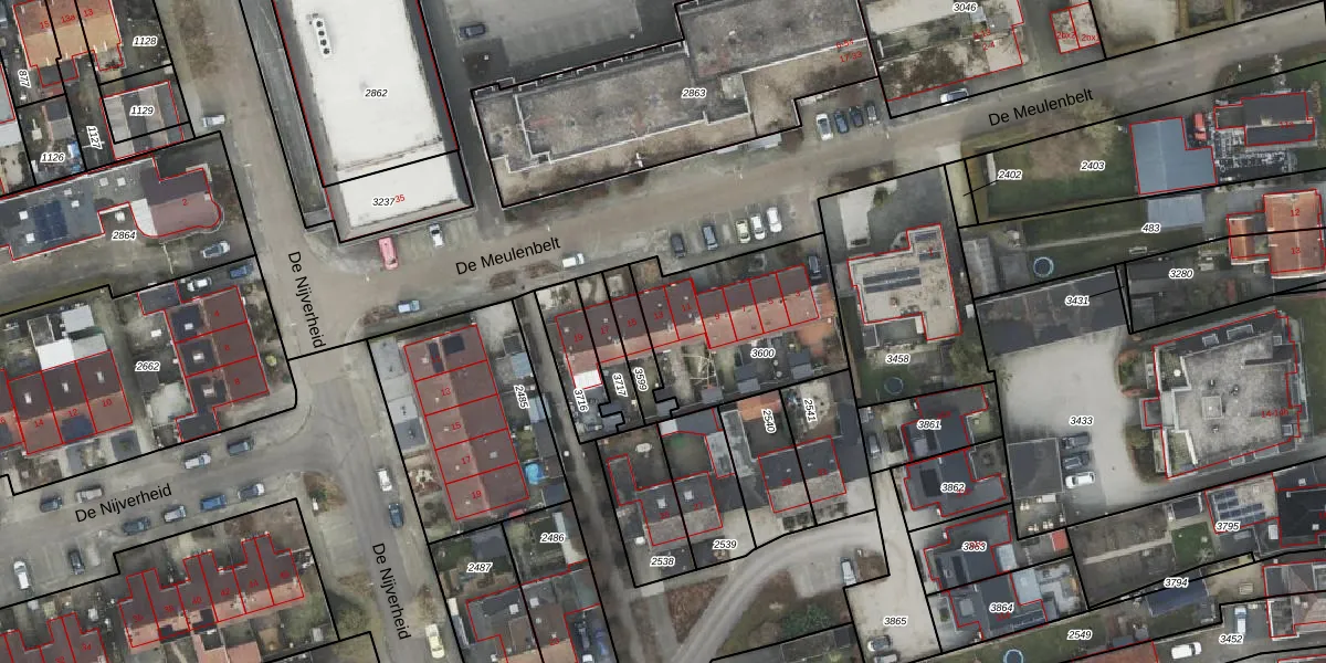 De Meulenbelt 13 is gelegen op kadastraal perceel HAM00G3600. Deze kadastrale aanduiding is uniek en wordt gebruikt door het Kadaster om eigendomsrechten en andere zakelijke rechten vast te leggen. Het perceel maakt onderdeel uit van de kadastrale gemeente Den Ham.