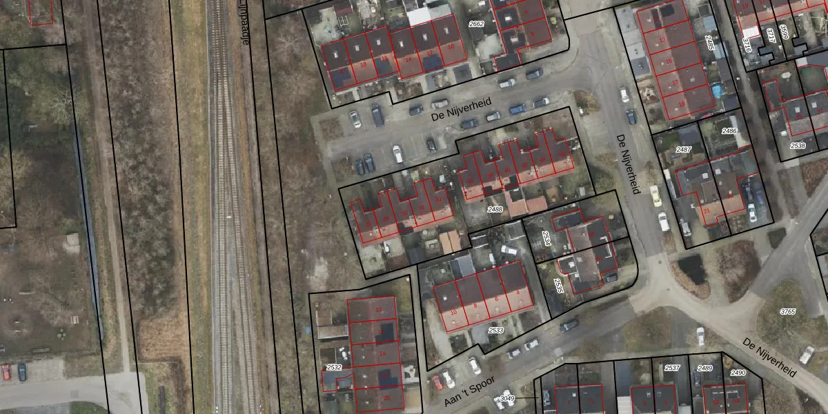 Het perceel waarop De Nijverheid 32 staat heeft een oppervlakte van 1322 m². Dit is een zeer groot perceel. De perceeloppervlakte wordt geregistreerd door het Kadaster. Gedetailleerde informatie over de maten van dit perceel kunt u vinden in het rapport Kadastrale kaart met maatvoering van De Nijverheid 32.