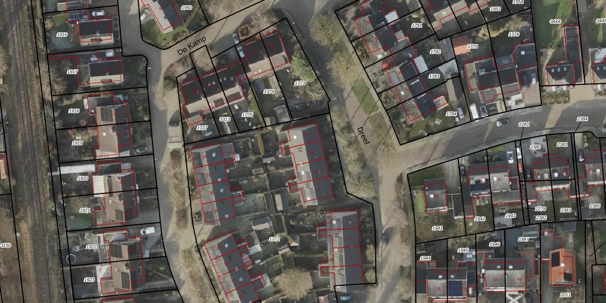 Het perceel waarop Dreef 13 staat heeft een oppervlakte van 3585 m². Dit is een zeer groot perceel. De perceeloppervlakte wordt geregistreerd door het Kadaster. Gedetailleerde informatie over de maten van dit perceel kunt u vinden in het rapport Kadastrale kaart met maatvoering van Dreef 13.
