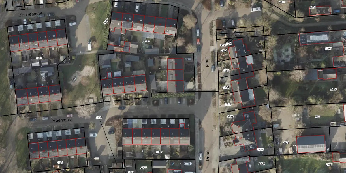 Het perceel waarop Dreef 21 staat heeft een oppervlakte van 2455 m². Dit is een zeer groot perceel. De perceeloppervlakte wordt geregistreerd door het Kadaster. Gedetailleerde informatie over de maten van dit perceel kunt u vinden in het rapport Kadastrale kaart met maatvoering van Dreef 21.