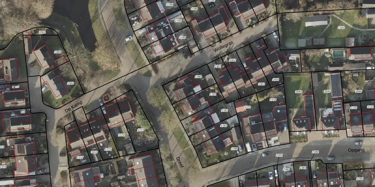 Gebruik de zoekbalk of klik op een perceel voor informatie over de adressen binnen dit perceel.