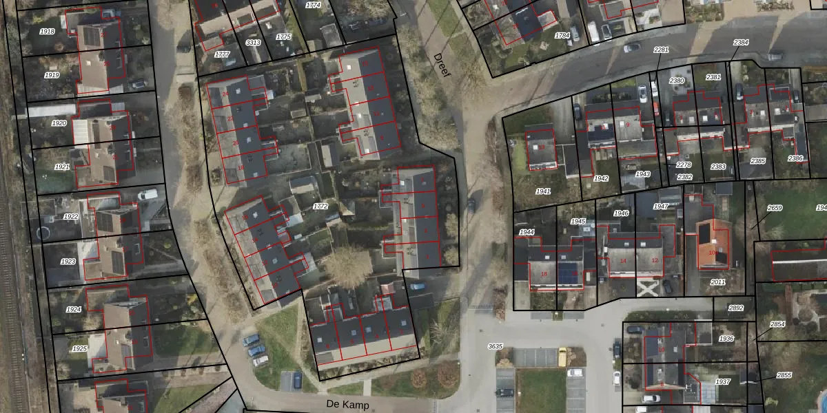 Het perceel waarop Dreef 5 staat heeft een oppervlakte van 3585 m². Dit is een zeer groot perceel. De perceeloppervlakte wordt geregistreerd door het Kadaster. Gedetailleerde informatie over de maten van dit perceel kunt u vinden in het rapport Kadastrale kaart met maatvoering van Dreef 5.