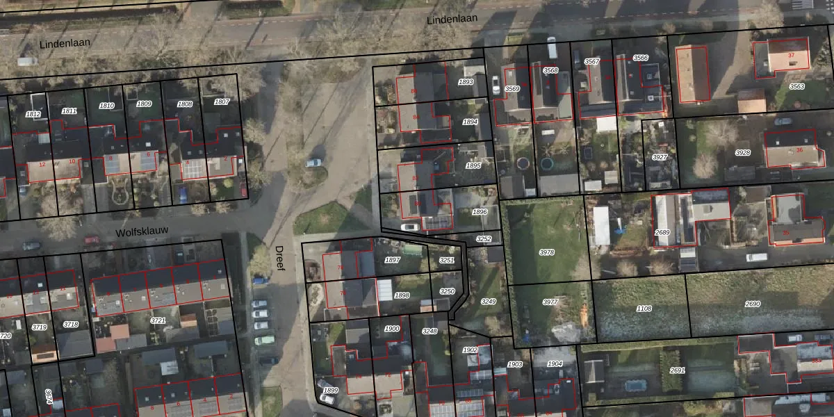 Het perceel waarop Dreef 80 staat heeft een oppervlakte van 297 m². Dit is een middelgroot perceel. De perceeloppervlakte wordt geregistreerd door het Kadaster. Gedetailleerde informatie over de maten van dit perceel kunt u vinden in het rapport Kadastrale kaart met maatvoering van Dreef 80.