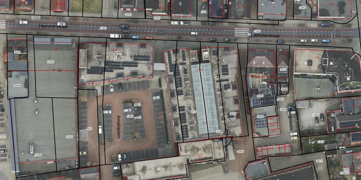 Het perceel waarop Hammerstraat 19 staat heeft een oppervlakte van 780 m². Dit is een groot perceel. De perceeloppervlakte wordt geregistreerd door het Kadaster. Gedetailleerde informatie over de maten van dit perceel kunt u vinden in het rapport Kadastrale kaart met maatvoering van Hammerstraat 19.