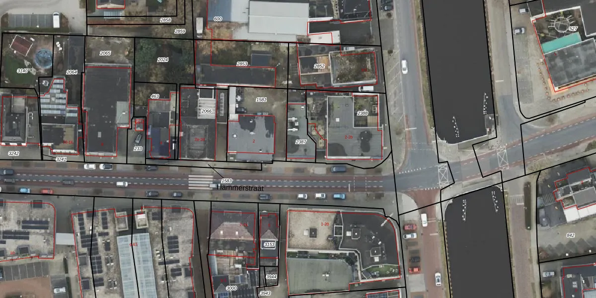 Hammerstraat 2-b is gelegen op kadastraal perceel HAM00G2387. Deze kadastrale aanduiding is uniek en wordt gebruikt door het Kadaster om eigendomsrechten en andere zakelijke rechten vast te leggen. Het perceel maakt onderdeel uit van de kadastrale gemeente Den Ham.