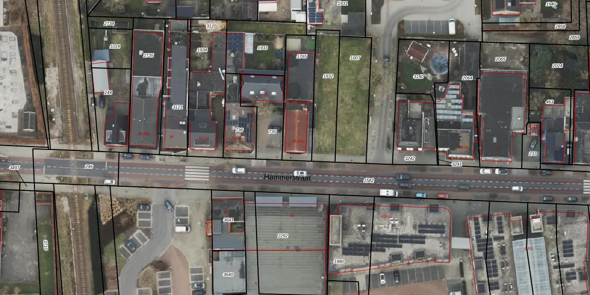 Hammerstraat 26 is gelegen op kadastraal perceel HAM00G1765. Deze kadastrale aanduiding is uniek en wordt gebruikt door het Kadaster om eigendomsrechten en andere zakelijke rechten vast te leggen. Het perceel maakt onderdeel uit van de kadastrale gemeente Den Ham.
